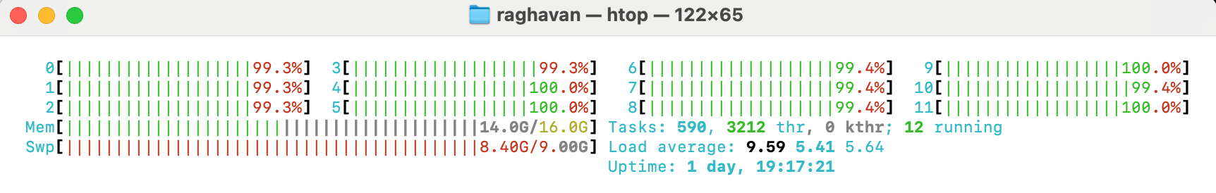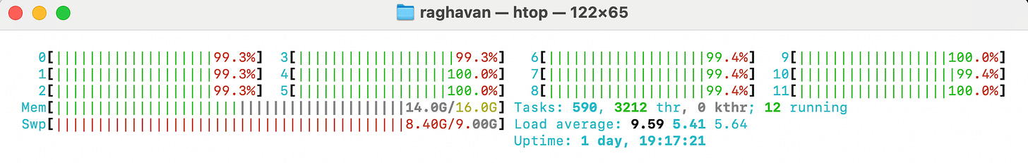 Snapshot from htop 👇 (all cores in action)