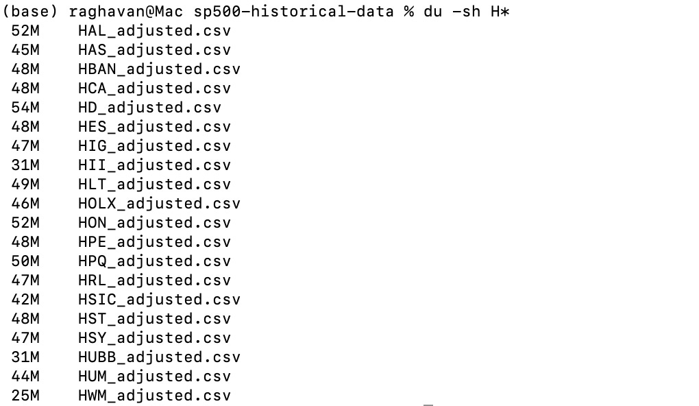 22GB dataset total, with an average file size of ~45MB per ticker.